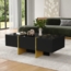 Der OKWISH Couchtisch mit den Maßen 100 x 50 x 35 cm vereint modernes Design und Funktionalität. Hergestellt aus hochwertigem MDF in elegantem Schwarz mit feinen Goldlinien, bietet er eine hochglänzende Oberfläche und eine Tragfähigkeit von bis zu 40 kg. Vier Schubladen, darunter eine seitlich ausziehbare, schaffen großzügigen Stauraum für Fernbedienungen, Bücher und Dekorationen. Sein minimalistisches und luxuriöses Design passt perfekt in jedes Wohnzimmer.