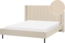 Bequemes Doppelbett mit elegantem Bouclé-Bezug in hellem Beige und stabilen schwarzen Metallbeinen. Das hohe, gesteppte Ohrensessel-Kopfteil verleiht dem Bett eine luxuriöse Ausstrahlung. Mit einem soliden Lattenrost und einer Liegefläche von 160x200 cm bietet es höchsten Liegekomfort und lädt zum Entspannen ein. Ideal für moderne Einrichtungsstile.