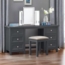 Die Julian Bowen Plattform in Anthrazit ist ein eleganter Frisiertischhocker aus der Maine Schlafzimmermöbelserie im New England-Stil. Mit einem gepolsterten Sitz und einem ansprechenden, getäfelten Design bietet dieser Hocker sowohl Komfort als auch Stil. Das anthrazit lackierte Finish aus MDF verleiht ihm eine zeitlose Ästhetik, die perfekt zu Ihrem Schlafzimmer passt.