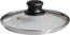 Universal-Glasdeckel RUBIN mit Kunststoffknopf und Edelstahlschutzrand, passend zu vielen Topf- und Pfannenserien. Mit Dampfaustrittsöffnung zum Sichtkochen. Maße: 20 cm (Ø außen: 21,5 cm, Ø unten 19,8 cm, Gewicht 440 g).