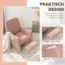 Dieser luxuriöse rosa Schaukelstuhl aus Wollstoff mit integriertem Fußhocker vereint Eleganz, Komfort und Stabilität. Die ergonomische Form unterstützt optimal Rücken, Taille und Arme, während die sanften Schaukelbewegungen für Entspannung sorgen. Der robuste Gummibaumholzrahmen garantiert Sicherheit und Stabilität. Mit kompakten Maßen von 67 x 126 x 98 cm passt der Stuhl ideal in Wohnzimmer, Schlafzimmer oder auf den Balkon.