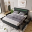 Dieses Polsterbett mit einer Liegefläche von 140x200 cm vereint elegantes Design und hohen Komfort. Der Leinenbezug in Grau und das gepolsterte Kopfteil mit dekorativen Zierknöpfen schaffen eine moderne Schlafatmosphäre. Die integrierte LED-Beleuchtung ist dimmbar und in verschiedenen Farben einstellbar. Vier geräumige Schubladen auf Rollen bieten praktische Aufbewahrung. Die inklusive 7-Zonen-Taschenfederkernmatratze sorgt für optimalen Schlafkomfort.