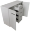 Das moderne Sideboard Nina von HTI-Living überzeugt durch sein zeitloses Design und die praktische Funktionalität. Mit den Maßen 88 x 70 x 30 cm bietet es ausreichend Stauraum in Form von vier Schubladen und Regalfächern, ideal für Geschirr, Bücher oder Kleidung. Das Sideboard aus robuster Spanplatte fügt sich harmonisch in jeden Wohnraum ein und lässt sich mühelos mit anderen Möbelstücken kombinieren.