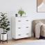 Die Kommode in Weiß mit den Abmessungen 69,5 x 34 x 90 cm aus hochwertigem Holzwerkstoff ist eine stilvolle und praktische Ergänzung für Ihr Zuhause. Sie bietet mit drei geräumigen Schubladen ausreichend Stauraum und eine glatte Oberfläche, die leicht zu reinigen ist. Die Oberplatte eignet sich ideal zur Präsentation von Dekoartikeln. Stabilität wird durch die Metallfüße gewährleistet. Bitte sichern Sie die Kommode mit der mitgelieferten Wandhalterung, um ein Umkippen zu vermeiden.