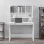 Der vidaXL Schreibtisch mit Regal in Weiß ist die ideale Lösung für kleine Räume. Mit den Abmessungen von 102 x 45 x 148 cm bietet er ausreichend Stauraum für Ordner, Dokumente und PC-Geräte. Hergestellt aus langlebigem Holzwerkstoff, überzeugt er durch Stabilität und Feuchtigkeitsbeständigkeit. Das platzsparende Design und die einfache Reinigung mit einem feuchten Tuch machen ihn zu einer praktischen Ergänzung für Ihr Zuhause. Eine Wandhalterung zur Sicherung ist im Lieferumfang enthalten.