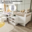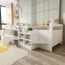 Dieses Kinderbett mit einer Liegefläche von 90x200 cm vereint ein klares, weißes Design mit funktionaler Vielseitigkeit. Es bietet nicht nur einen komfortablen Schlafplatz, sondern auch einen integrierten Schreibtisch und mehrere Staufächer. Die robusten Holzkomponenten und die abgerundeten Kanten sorgen für Sicherheit und Langlebigkeit. Mit zwei USB-Anschlüssen und einer Standard-Rundsteckdose ist es ideal für das Lernen und Spielen.