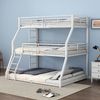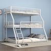 Dieses Dreifach-Etagenbett mit Eisenrahmen eignet sich perfekt für Familien mit mehreren Kindern oder für Personalwohnungen, Wohnungen usw. Es hat ein minimalistisches Design, das zu den meisten Innenräumen passt. Das Dreifach-Etagenbett nutzt den vertikalen Raum, um viel Platz zu sparen, und die beiden oberen Etagen sind mit stabilen Geländern ausgestattet, um versehentliche Stürze zu verhindern und eine erholsame Nachtruhe zu gewährleisten. Die im Lieferumfang enthaltene feste Leiter bietet einen sicheren und einfachen Zugang zur oberen Etage, und die lange Leiter kann zur Bequemlichkeit und Sicherheit links oder rechts angebracht werden. Das moderne Unisex-Design ist für alle Altersgruppen geeignet. Dieses Bett ist ideal, um Platz zu sparen!