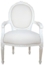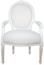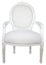 Dieser handgefertigte Besucherstuhl im Barockstil vereint Eleganz und Komfort. Mit einer Höhe von ca. 102 cm und einer Breite von ca. 65 cm bietet er eine ansprechende Sitzhöhe von ca. 43,5 cm und eine Sitztiefe von ca. 50 cm. Der Stuhl ist aus massivem Holz gefertigt und mit edlem Baumwollstoff in Weiß / Crème bezogen. Die Polyätherschaum-Polsterung sorgt für zusätzlichen Komfort. Jedes Stück ist ein Unikat mit charakteristischen Antikstil-Merkmalen.