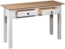 Dieser Konsolentisch aus massivem Kiefernholz vereint schlichte Eleganz mit rustikalem Charme. Mit den Abmessungen 110 x 40 x 72 cm (L x B x H) passt er in nahezu jeden Raum und bietet eine robuste Tischplatte für Dekorationsartikel, Bilderrahmen oder Pflanzen. Zwei Schubladen sorgen für zusätzlichen Stauraum. Die Montage ist unkompliziert, und zur Sicherheit kann der Tisch mit der mitgelieferten Halterung an der Wand gesichert werden.