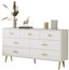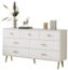 Das OKWISH Sideboard Küchenschrank ist eine stilvolle Kommode mit 7 Schubladen, die durch goldene Griffe und Beine akzentuiert wird. Mit den Maßen 140 x 35 x 76 cm bietet es ausreichend Stauraum und ist aus robuster Spanplatte gefertigt. Die Schubladen sind mit latte Schubladenführungen ausgestattet und haben eine Gewichtskapazität von bis zu 25 kg.