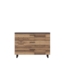 Die freiraum Kommode Jakobina in Schwarz-Braun kombiniert robustes Industrial-Design mit praktischer Funktionalität. Mit großzügigen Abmessungen von 120,1 x 85,8 x 41,3 cm (BxHxT) und einem Gewicht von 46 kg bietet sie stabilen Stauraum. Die drei Schubladen mit Innenmaßen von 53,8 x 12,6 x 34,3 cm sorgen für Ordnung. Der Oberboden aus 22 mm dicker Spanplatte hält bis zu 20 kg aus. Die pflegeleichte Folienbeschichtung und die schwarzen Metallfüße runden das moderne Erscheinungsbild ab.
