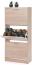 Ausführung: 1x Schuhschrank Mainz Farbe: Eiche Sonoma Dekor 3 Klappen Frontkanten gesoftet Maximal Schuhgröße 45 Mit verstellbaren Böden für High-Heels Bis zu 18 Paar Schuhe Griffe: Alu-Optik Zerlegte Ware, eine bebilderte Aufbauanleitung liegt bei