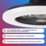 Brilliant LED Deckenlampe mit Ventilator, 49 cm Ø – eine stilvolle Kombination aus eleganter Kristalloptik und einem effektiven Ventilator. Diese Leuchte in elegantem Schwarz bietet dimmbare RGB-Frontlichter und CCT-Zentralbeleuchtung, die sich bequem über die mitgelieferte Fernbedienung steuern lassen. Genießen Sie eine angenehme Luftzirkulation und schaffen Sie die perfekte Atmosphäre in Ihrem Raum, egal ob warmweiß oder tageslichtweiß.