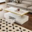 Dieser elegante Couchtisch in strahlendem Hochglanzweiß vereint modernes Design mit praktischer Funktionalität. Mit zwei Ebenen bietet er ausreichend Platz für Kaffeetassen, Bücher und Dekoration. Die integrierte Schublade ermöglicht eine diskrete Aufbewahrung persönlicher Gegenstände. Die goldene Versiegelung an der oberen Platte setzt stilvolle Akzente und verleiht Ihrem Wohnzimmer einen Hauch von Luxus. Hergestellt aus langlebiger Spanplatte, ist der Tisch stabil und ideal für kompakte sowie größere Wohnräume.