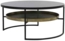 Der Couchtisch ROWDY von Light & Living vereint robustes Metall mit elegantem Glas in einem stilvollen Design. Mit einem Durchmesser von 88 cm und einer Höhe von 40 cm bietet er eine großzügige Ablagefläche. Die Kombination aus schwarzem Glas und antikem Bronze-Touch verleiht dem Tisch eine zeitlos elegante Ausstrahlung. Ideal für Wohnzimmer und Lounges, sorgt er für eine luftige Optik und setzt optische Akzente.