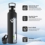 Die 1L Thermosflasche aus hochwertigem 18/8 Edelstahl bietet eine doppelte Vakuumisolierung, die Getränke bis zu 12 Stunden heiß und bis zu 24 Stunden kalt hält. Sie ist 100 % auslaufsicher und verfügt über zwei austauschbare Deckel: einen Strohhalmdeckel für einfaches Trinken und einen Griffdeckel mit abnehmbarem Filter. Diese BPA-freie Flasche ist ideal für Sport, Reisen und den Alltag.