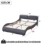 Das Flieks Polsterbett mit LED-Beleuchtung vereint modernes Design und Funktionalität. Mit einer Größe von 229 x 147 x 74 cm und einem eleganten Bogendesign bietet es nicht nur Komfort, sondern auch eine stilvolle Ergänzung für Ihr Schlafzimmer. Das Bett ist aus hochwertigem MDF, Kunstleder und Metall gefertigt und unterstützt eine maximale Belastbarkeit von 200 kg. Die empfohlene Matratzenstärke beträgt bis zu 13 cm (Matratze nicht im Lieferumfang enthalten).