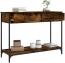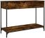 Dieser stilvolle Konsolentisch aus Räuchereiche mit den Abmessungen 100 x 34,5 x 75 cm verleiht Ihrem Flur, Wohnzimmer oder Eingangsbereich eine elegante Note. Hergestellt aus hochwertigem Holzwerkstoff und einem stabilen Metallrahmen, bietet er reichlich Stauraum für Zeitschriften und Dekoartikel. Die verstellbaren Beine sorgen für zusätzliche Stabilität, auch auf unebenem Boden.
