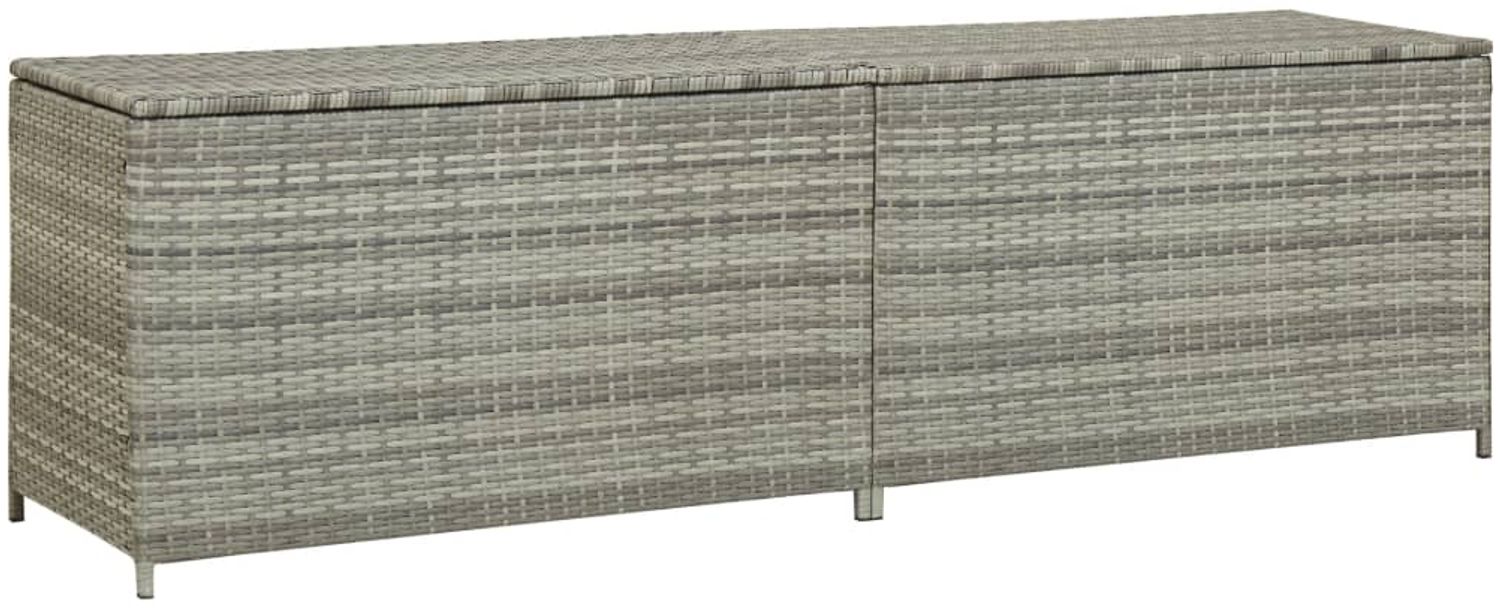 Die vidaXL Gartenbox aus Poly Rattan in Grau ist die ideale Lösung für Ihre Aufbewahrungsbedürfnisse im Freien. Mit großzügigen Abmessungen von 200 x 50 x 60 cm bietet sie ausreichend Platz für Gartenartikel, Auflagen und Kissen. Der pulverbeschichtete Stahlrahmen und das handgewebte Poly-Rattan sorgen für Langlebigkeit und Witterungsbeständigkeit. Der praktische Gasdruckfedermechanismus ermöglicht ein müheloses Öffnen und Schließen des Deckels, während die erhöhten Füße für eine gute Luftzirkulation sorgen.
