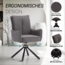 Mit seiner klaren Silhouette und dem strukturierten Stoffbezug in elegantem Anthrazit bringt dieser Drehstuhl moderne Klarheit in Ihren Wohn- oder Arbeitsbereich. Die fest integrierte Rückenpolsterung und die gepolsterten Armlehnen sorgen für hohen Komfort. Dank der 360° Drehfunktion bleiben Sie flexibel, während das stabile Metallgestell für Sicherheit sorgt. Ein Stuhl, der Geradlinigkeit mit Komfort verbindet und sich nahtlos in viele Wohnkonzepte einfügt.