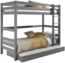 Lieferumfang: Etagenbett mit Bettschublade - Allgemeine Eigenschaften: - Material: Massive Kiefer - Oberfläche: Grau lackiert - Besonderheiten: - Etagenbett mit 2 Schlafgelegenheiten - Umlaufender Absturzschutz für die obere Liegefläche - Leiter links oder rechts montierbar - Kann zu 2 Einzelbetten zurückgebaut werden - Breite Trittstufen für sicheres Hinauf- und Hinabsteigen - Inklusive Bettschublade auf Rollen - Hochwertige Verarbeitung - Sehr gute Stabilität - Montage: Zerlegt, mit Aufbauanleitung zur einfachen Selbstmontage - Beschläge: Hochwertige Verarbeitung nach EN 747-2:2012+A1(2015) - Spezifische Details: - Etagenbett: - Liegeflächen: Jeweils 90 x 200 cm - Abstand zwischen den Liegeflächen: Ca. 110 cm - Bodenfreiheit: Ca. 20 cm - Leiter: Breite Trittstufen, links oder rechts montierbar - Pfostenstärke: Ca. 6,4 x 6,4 cm - Bettseiten und Absturzschutz: Stärke ca. 2,0 cm - Max. Matratzenhöhe: Ca. 20 cm - Produktmaße: Ca. B: 210 cm x H: 182 cm x T: 105 cm - Zubehör: 2 Rolllattenroste im Lieferumfang enthalten - Bettschublade: - Nutzen: Zusätzlicher Stauraum oder zweite Schlafgelegenheit - Innenmaß: B: 195 x H: 10 x T: 90 cm - Rollenführung für einfaches Herausziehen - Bodenplatte inklusive - Matratze: Nicht im Lieferumfang enthalten - Zusätzliche Informationen: - Nicht geeignet für Kinder unter 6 Jahren - Wandbefestigung: Erforderlich - Dekoration: Nicht im Lieferumfang enthalten - Nachhaltigkeit: FSC®-zertifiziert Maße: Aufstellmaß (B/H/T): 210 x 161 x 105 cm Liegefläche: 90x200 Qualität: Stabile Konstruktion und hochwertige Verarbeitung Massivholz Pflegehinweise: Mit einem feuchten Tuch abwischen, zur Reinigung empfehlen wir ein feuchtes Baumwolltuch, keine scharfen Haushaltsreiniger & Scheuermittel verwenden Lieferart: Premiumversand Die Anlieferung erfolgt per Spedition im 2 Mann Service "frei Verwendungsort" d.h. niemand muß mit anfassen und die Pakete werden dorthin getragen wo Sie es wünschen (nicht nur bis zur Bordsteinkante). Aufbauart: zerlegt , zur Selbstmontage. Mit Hilfe der beiliegenden bebilderten Aufbauanleitung sind die Möbel auch für handwerklich eher unbegabte leicht aufzubauen.
