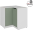 Küchen Eckunterschrank ARIA in Aquamarin ultra matt und Weiß matt, ideal für Stellmaß 90x90 cm. Ausgestattet mit zwei Türen und einem Einlegboden, bietet dieser hochwertige Schrank eine pflegeleichte Oberfläche dank der Anti Fingerprint Beschichtung. Der Korpus ist aus Laminat gefertigt und in Weiß matt gehalten.