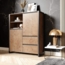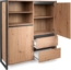 Das Newroom Highboard Vincent aus Wildeiche im Vintage Industrial Stil vereint Ästhetik und Funktionalität. Es bietet großzügigen Stauraum und eignet sich ideal als Ablage für verschiedene Gegenstände. Das elegante Design der Serie Vincent fügt sich harmonisch in jedes Wohnambiente ein, sei es im Wohnzimmer, Schlafzimmer, Arbeitszimmer, Badezimmer oder Flur.