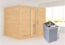 Die hochwertige Massivholzsauna aus vorgefertigten Wandelementen, die der Höhe nach geteilt sind und einfach aufeinander gesteckt werden, besteht aus 40 mm starkem Massivholz. Die aus Nordeuropa stammende Fichte wächst besonders langsam und bietet somit eng stehenden Jahresringen optimale Voraussetzungen für die Verarbeitung im Saunabau. Diese Kabine bietet 3 Liege/n, welche innen auf Vierkanthölzern montiert werden. Durch die Massivbauweise sind Sie in der Höhe der Liegen flexibel. Die können dies nach Wunsch bestimmen. Die Sauna verfügt über ein Außenmaß von 264 cm x 198 cm und einem Innenmaß von 225 cm x 173 cm somit ergibt sich ein Volumen von 7,7 cbm. Schaffen Sie sich eine Wellness-Oase mit Fronteinstieg in den eigenen 4 Wänden und riechen Sie den wohltuenden Duft von naturbelassenem Holz. Nur für den privathäuslichen Einsatz geeignet. Unsere Massivholzsauna verfügt über 4 Sichtseiten, da die Wände umlaufend aus hochwertigem Fichtenholz in Massivholzbauweise erstellt sind. Artikelbeschreibung: Außenmaß inkl. Dachkranz: B 264 x T 198 x H 212 cm Außenmaß: B 236 x T 184 x H 209 cm Innenmaß: B 225 x T 173 x H 200 cm Grundfläche: ca. 4,34 m² Rauminhalt: 7,7 m³ Sauna-Glastür: ca. 64 x 173 cm (Durchgangsmaß) Wandstärke: 40 mm Steck-Schraub-System Material: Nordische Fichte, naturbelassen Verpackungseinheit Sauna: B 237 × T 126 × H 71 cm / 399 kg Verpackungseinheit Dachkranz: B 270 × T 23 × H 12 cm / 15,5 kg Im Lieferumfang enthalten: Vormontierte Wandelemente Werden durch Schrauben und Stecken miteinander verbunden Vormontierte Dachelemente Innen: Mineralwolldämmung mit 42 mm starken Rahmenkonstruktion Verkleidung: 12,5 mm Spezial-Softline-Fichte-Profilholz Außenseite: Verstärkung mit Platte Saunatür Varianten: Energiespartür aus Massivholz mit 14 mm Isolierglas, wärmegedämmt Rechts und links anschlagbar; Magnetverschlusstechnik Justierbare Türbänder für optimale Ausrichtung Bronzierte Ganzglastür Rechts und links anschlagbar; Magnetverschlusstechnik Beschläge mit Excenter für optimale Ausrichtung der Glasscheibe Einscheibensicherheitsglas Graphitfarbende Ganzglastür Rechts und links anschlagbar; Magnetverschlusstechnik Beschläge mit Excenter für optimale Ausrichtung der Glasscheibe Einscheibensicherheitsglas Edelstahl-Griff (Innen aus Holz) Klarglas Ganzglastür Rechts und links anschlagbar; Magnetverschlusstechnik Beschläge mit Excenter für optimale Ausrichtung der Glasscheibe Einscheibensicherheitsglas Edelstahl-Griff (Innen aus Holz) Sauna-Liegen Vormontiert (bis 250 kg belastbar) 2 Liegen ca. 57 cm breit 1 Querliege ca. 52 cm breit Liegeflächen aus Espe-Massivholz Front mit Spezial-Espe-Massivholz-Profil 1 Kopfstütze aus Espe-Massivholz, vormontiert Ofenschutz Nordische Fichte, Massivholz Maße (B x H x T): 60 x 51 x 80 cm Optional mit oder ohne Dachkranz inkl. LED-Strahlerset Dachkranz aus Nordische Fichte, Massivholz Inkl. Kabel und 3 Strahler á 7,5 Watt Strahlerposition im Kranz frei wählbar Montagematerial Aufbauanleitung 10 cm Wand- und Deckenabstand beim Aufbau einhalten! Aufbau mit und ohne Dachkranz möglich Lieferung ohne Saunaofen: Empfohlene Ofenheizleistung: 8-9 k W Erhältliche Ofen-Sets: 9 KW Saunaofen Außenmantel aus Edelstahl Feueraluminisierter Innenmantel gegen Knackgeräusche Rückwand und Elektroanschlusskasten aus feueraluminisiertem Stahl Lieferung ohne Silikonkabel (als Zubehör erhältlich) Inkl. 18 kg Diabassteine Maße (B x H x T): 41 x 50 x 37 cm wahlweise mit: integrierter Steuerung Externe Easy Steuerung Schaltleistung von 9 k W Heizbegrenzung bis zu 6 Stunden Anschluss für Kabinenbeleuchtung 7-Segmentanzeige mit einer Vorwahluhr Stufenlos zwischen 10 und 110 °C regelbar Sicherheitstemperaturbegrenzung bei 140 °C Maße (B x H x T): 25 x 20 x 8 cm 9 KW Bio-Sauna-Kombiofen mit externer Steuerung Außenmantel aus Edelstahl Integrierte Verdampfereinheit mit Ablauf (Füllmenge: 4L) Abnehmbares Bodenblech mit Tropfschale Verdampferschale für z.B. ätherische Öle Aluminium-Druckguss-Abdeckrahmen Wassermangelüberwachung Trockenlaufschutz Lieferung ohne Silikonkabel (als Zubehör erhältlich) Inkl. 18 kg Diabassteine Maße (B x H x T): 41 x 50 x 37 cm Externe Easy Steuerung Schaltleistung von 9 k W Heizbegrenzung bis zu 6 Stunden Anschluss für Kabinenbeleuchtung 7-Segmentanzeige mit einer Vorwahluhr Stufenlos zwischen 10 und 110 °C regelbar Sicherheitstemperaturbegrenzung bei 140 °C Maße (B x H x T): 25 x 20 x 8 cm Hinweis: Der elektrische Anschluss der Sauna sollte nur durch einen zugelassenen Elektro-Fachmann erfolgen