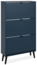 Schuhkipper mit 3 Klappen und je 2 Ablagen Farbe: Pastel blau Maß: B x H x T ca. 70 x 125 x 24 cm Korpusstärke: ca. 16 mm Massivholzfüße in schwarz, ca. 16 cm hoch Kunststoffgriffe in schwarz Melaminbeschichtung ABS-Kante Hergestellt in Deutschland