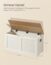 Die VASAGLE Schuhbank ist eine stilvolle Sitztruhe im Landhausstil, die mit einem geräumigen Fach für Decken, Kissen, Kleidung und Bücher ausgestattet ist. Mit den Abmessungen von 40 x 100 x 46 cm bietet sie nicht nur ausreichend Stauraum, sondern auch eine hohe Belastbarkeit von bis zu 136 kg auf der Oberfläche und 60 kg im Fach. Die 2 Sicherheitsscharniere sorgen für eine sichere Handhabung, während die handfreundlichen Seitengriffe den Transport erleichtern.