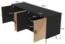 Dieses stilvolle Sideboard in Schwarz mit Holzmaserung ist eine elegante und funktionale Ergänzung für Ihr modernes Zuhause. Mit großzügigen Abmessungen von 160 cm Länge, 40 cm Breite und 75 cm Höhe bietet es viel Stauraum hinter vier Türen. Die gebürsteten goldenen Griffe und die hochglänzenden goldenen Tischbeine verleihen dem Möbelstück einen luxuriösen Akzent. Gefertigt aus robustem MDF und PB, garantiert es Langlebigkeit und Stabilität.