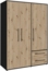 Forte MOKKARIS Kleiderschrank 140 150, moderner Drehtürenschrank, 3-türig, 2 Schubladen, Holzwerkstoff, Schwarz mit Artisan Eiche Holzdekor, 144,4 cm breit x 200,1 cm hoch x 58,8 cm tief