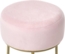 Runder Hocker aus pastellrosafarbenem Samtstoff mit goldenem Metallgestell. Dieser multifunktionale Pouf bietet nicht nur zusätzlichen Sitzplatz, sondern kann auch als Ablage für Snacks dienen. Mit einem weichen, strapazierfähigen Bezug und stabilen Metallbeinen fügt er sich harmonisch in moderne und traditionelle Wohnräume ein.