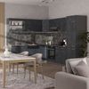 Vicco Einbauküche in L-Form Schwarz Beton/Anthrazit 227 x 287 cm ohne Arbeitsplatte, R-Line. Diese Eckküche bietet durch ihr L-Form-Design viel Arbeitsfläche und Stauraum für Küchenutensilien. Die Module sind umstellbar und erweiterbar, während die höhenverstellbaren Füße eine optimale Anpassung ermöglichen. Investieren Sie in eine funktionale Küchenzeile, die Ihnen ein angenehmes Küchenerlebnis bietet.