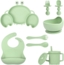 Silikon-Babygeschirr-Set mit Saugnäpfen, bestehend aus 8 Teilen, bietet alles, was Sie für die ersten Essversuche Ihres Kindes benötigen. Das Set umfasst rutschfeste Teller, Schüsseln, Becher, Löffel und Gabeln, die aus 100 % lebensmittelechtem Silikon gefertigt sind. BPA-frei und speziell für die babygeleitete Beikost entwickelt, unterstützt es den Übergang zum selbstständigen Essen. Die glatte Oberfläche sorgt für eine einfache Reinigung, und das Geschirr ist sowohl mikrowellen- als auch spülmaschinenfest.