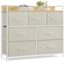 Verabschieden Sie sich vom Chaos mit der Songmics Kommode, die über 7 Stoffschubladen verfügt. Diese Kommode in cremeweiß-wolkenweiß bietet mit ihren Abmessungen von 98 x 28,5 x 85 cm (BxTxH) ausreichend Platz für Ihre Kleidung und Accessoires. Die stabilen Materialien aus Holzspanplatte und Stahl garantieren Langlebigkeit und Sicherheit. Dank der verstellbaren Füße und des Kippschutzes ist die Kommode auch auf unebenen Böden stabil.