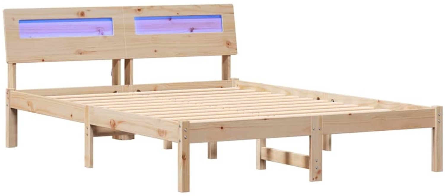 Dieses Plattformbettgestell mit Kopfteil aus massivem Kiefernholz vereint modernen Stil und praktische Nutzung. Mit einer Gesamtgröße von 202 x 145,5 x 73 cm (L x B x H) bietet es stabilen Komfort für bis zu 2 Personen. Die integrierten LED-Streifen schaffen eine stimmungsvolle Atmosphäre, während das clevere Design kein Boxspring benötigt. Die pflegeleichte Oberfläche sorgt für einfache Reinigung und macht es ideal für vielbeschäftigte Personen.