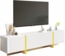 Dieser moderne TV-Schrank von MODFU vereint elegantes Design mit funktionalem Stauraum. Die harmonische Farbkombination aus strahlendem Weiß, edlen Goldakzenten und warmer Holzmaserung macht ihn zum stilvollen Mittelpunkt Ihres Wohnraums. Mit großzügigen Maßen von 190 x 35 x 45 cm bietet er ausreichend Platz für Ihre Unterhaltungselektronik und sorgt für eine organisierte Unterbringung.