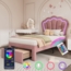 Polsterbett 90x200 cm Rosa Samt mit LED-Beleuchtung, Verstellbares Kopfteil ,mit Schublade und Blumenmuster Design