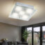 Moderne Deckenleuchte in quadratischem Design mit hochwertiger Verarbeitung aus Metall und Chrom. Die Kombination aus satiniertem Glas und klaren Dekorsteinen verleiht der Leuchte einen eleganten Stil. Mit einer Länge von 28 cm und einer Höhe von 6,2 cm sorgt die fest verbaute LED-Technologie für eine helle, warmweiße Beleuchtung. Ideal für jeden Raum.