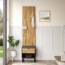 Dieser elegante Flurbaum von MODFU kombiniert die natürliche Eichenholzmaserung mit modernen schwarzen Akzenten und einem stabilen Eisenrahmen. Mit einer Höhe von 210 cm, einer Breite von 50 cm und einer Tiefe von 38 cm bietet er optimale Platznutzung. Die Polsterbank mit dunkelgrauem Kissen sorgt für Komfort beim An- und Ausziehen der Schuhe. Praktische Aufbewahrungslösungen wie eine Schublade, ein offenes Fach und drei Haken halten Ihren Eingangsbereich stets organisiert.