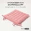 Das elegante Stuhlkissen aus sanft schimmerndem Baumwollsamt in zartem Rosa bietet hervorragenden Sitzkomfort. Mit einer Größe von etwa 40x40 cm und einer komfortablen Dicke von 5 cm ist es ideal für moderne und traditionelle Einrichtungen. Die langen Bindebänder sorgen für eine sichere Befestigung, während das stilvolle Design frische Farbtupfer in Ihre Räume bringt.