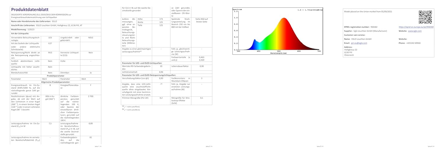 Eglo 110123 Leuchtmittel LED E27 L:17. 3cm Ø:12. 5cm dimmbar 2700K
