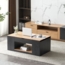 Dieser innovative Couchtisch kombiniert Funktionalität und modernes Design. Mit einer Länge von 109,5 cm und einer Höhe von 43 cm bietet er eine großzügige Ablagefläche, die dank des hydraulischen Mechanismus höhenverstellbar ist. Der Tisch verfügt über ein verstecktes Staufach sowie ein offenes Regal, ideal für Bücher und Dekoration. Gefertigt aus hochwertigem MDF, überzeugt er durch Stabilität und eine Tragfähigkeit von bis zu 30 kg.