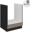 Küchen Herdunterschrank 60 cm ARIA in Sandgrau ultra matt und Schwarz matt. Ausgestattet mit hochwertigen Fronten mit Anti Fingerprint Beschichtung, die die Sichtbarkeit von Fingerabdrücken reduziert und die Reinigung erleichtert. Der Schrank ist passend für alle handelsüblichen Einbauherde und bietet eine feste Blende ohne Arbeitsplatte.