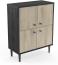 Trendiger Industrial-Style - vielseitig einsetzbar. "Arriana I" hat genau die richtige Größe für eine Kommode. Platzsparend dank einer geringen Tiefe findet die Kommode nahezu überall ein nettes Plätzchen und weiß mit effektivem Stauraum nicht zu geizen. Da sie aus Spanplatte gefertigt ist, ist die Kommode "Arriana I" angenehm leicht, aber nicht minder robust und stabil. Dank der qualitativ hochwertigen Verarbeitung trotzt sie erfolgreich dem alltäglichen Gebrauch und der damit verbundenen Abnutzung. Die Melaminbeschichtung schützt nicht nur effektiv vor Kratzern, sondern sorgt auch dafür, dass die Oberfläche lange wie neu aussieht. Die Kommode "Arriana I" ist hier in Kornberg-Eiche Nachbildung / Schwarz erhältlich. In Kombination mit den schwarzen Kunststoffgriffen sowie den schwarzen Füßen wird der Kommode eine trendige Industrial-Ausstrahlung verliehen. Die Holznachbildung ist qualitativ sehr hochwertig mit täuschend echter Maserung. "Arriana I" erfreut durch reichlich Stauraummöglichkeiten in Form von 1 Einlegeboden hinter 4 Holztüren. Hier lassen sich Dinge, wie z. B. Deko, Geschirr, Gläser Vasen und vieles mehr praktisch im Handumdrehen sauber und ordentlich verräumen. Dank der durchgehenden Lochreihe lassen sich der Einlegeboden ganz nach eigenem Belieben einstellen. Der Oberboden bietet nicht nur eine weitere Ablage- bzw. Abstellfläche, sondern lädt zum Dekorieren geradezu ein. Produktabmessungen: Breite 60,7 cm, Höhe 75,7 cm, Tiefe 28,5 cm Fußhöhe: ca. 12 cm Material: Spanplatte melaminbeschichtet Griffe/Füße: Kunststoff Farbe: Kronberg Eiche Nachbildung / Schwarz Griffe/Füße: Schwarz Produktdetails: Kommode im Industrial-Design 4 Holztüren 1 Einlegeboden durchgehende Lochreihe Einlegeboden bis max. 6 kg belastbar Oberboden bis max. 7 kg belastbar PEFC® zertifiziert Plattenstärke 15 mm karbonisierte Holzoptik Lieferung erfolgt zerlegt inkl. leicht verständlicher Aufbauanleitung Verkauf erfolgt ohne Dekoration und Beimöbel