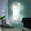 Beschreibung Die Wandlampe punktet mit der Materialkombination aus verchromten Metall und einer überwiegend klaren Glasplatte, die an den Stellen der LED Leuchtmittel satiniert ist. Die rechteckige Wandleuchte (28x12 cm) leistet knapp 600 Lumen starkes Licht mit einer angenehm warmweißen 3000K Lichtfarbe. Zwei LED-Leuchtmittel sind im Lieferumfang enthalten. Details Lampe • Lampentyp: Wandleuchte