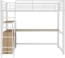 140 x 200 cm Hochbett aus Eisen mit praktischem L-förmigen Schreibtisch und Schubladen. Das Bett bietet eine robuste Konstruktion aus Metall und MDF, ideal für Lernen und Arbeiten. Die zwei Schubladen sorgen für zusätzlichen Stauraum und Ordnung. Das elegante Laminatdesign ist pflegeleicht und langlebig. Die Montage ist einfach und wird durch eine detaillierte Anleitung unterstützt.