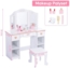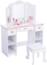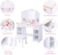 Kleine Prinzessinnen lieben diesen stilvollen Schminktisch mit Hocker! Das hochwertige Set aus robustem, kindgerechtem MDF überzeugt mit abgerundeten Ecken und glatter Oberfläche für maximale Sicherheit beim Spielen. Die großzügige Ausstattung mit drei Schubladen und vier offenen Regalflächen bietet viel Platz für Schminke, Haarspangen, Bücher oder kleine Schätze. Der große, dreigeteilte Spiegel sorgt für den perfekten Überblick beim Stylen und Verkleiden – ideal für kreative Rollenspiele und fantasievolle Partys. Dank kindgerechter Höhe ist das Set perfekt für Mädchen von 4 bis 9 Jahren geeignet und fügt sich harmonisch ins Kinderzimmer, den Spielbereich oder das Wohnzimmer ein. Die Montage gelingt mit der beiliegenden Anleitung leicht, die pflegeleichte Oberfläche ist jederzeit schnell saubergewischt.