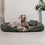 Kuscheliges orthopädisches Hundebett XENIA in Olivgrün (145x105 cm) bietet Ihrem Hund höchsten Komfort. Der samtweiche Bezugsstoff ist abnehmbar und waschbar, während die orthopädische Visco-Matratze herausnehmbar ist, was das Bett ideal für Reisen macht. Der abgeflachte Rand erleichtert den Einstieg und sorgt für eine optimale Luftzirkulation.